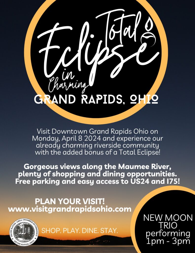 The Village of Grand Rapids will be celebrating the total eclipse on Monday, April 8.